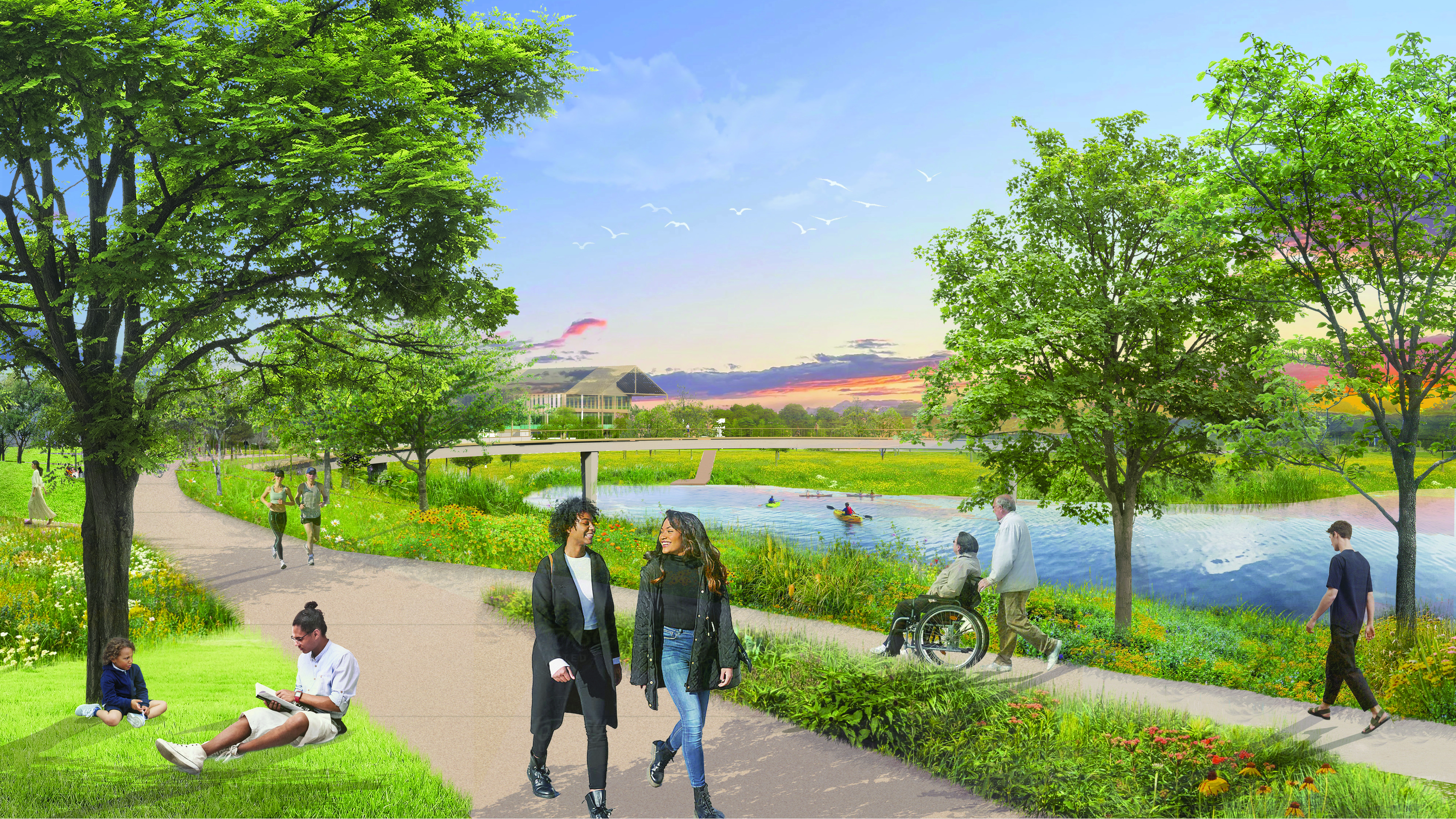 Riverfront Recapture’s Future Park transforms over 60 acres of riverfront land into a thriving community park, offering the Hartford/Windsor community unprecedented access to the Connecticut River, a regional trail extension, a broad range of nature-based and water-based recreational programming, and adjacent development that connects the park to local neighborhoods.